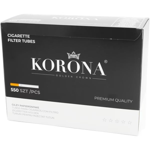 Tuburile sunt realizate din hârtie rezistentă, dar fină, oferind o senzație plăcută în timpul fumatului. Filtrul alb adaugă o notă estetică țigării finite, fiind preferat de mulți fumători pentru aspectul său curat și clasic. Marca Korona este recunoscută pentru produsele sale de calitate superioară, iar aceste tuburi nu fac excepție.